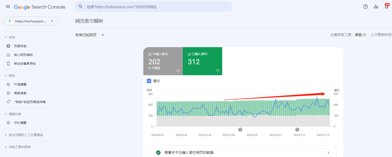 展示数随收录页面一起上升编入索引页面保持缓慢上升,展示次数却有明显的增长。事实证明,坚持优化,经过Google的验证,是可以增加更多展示页面的!