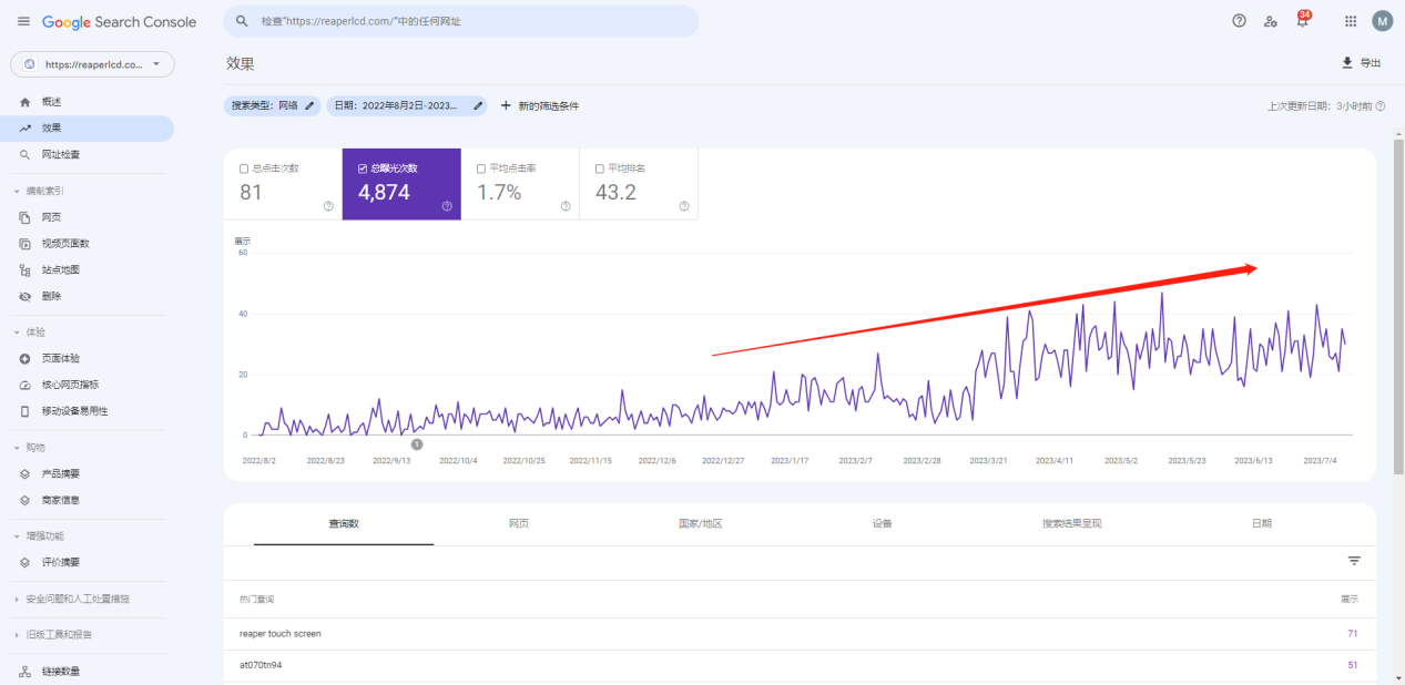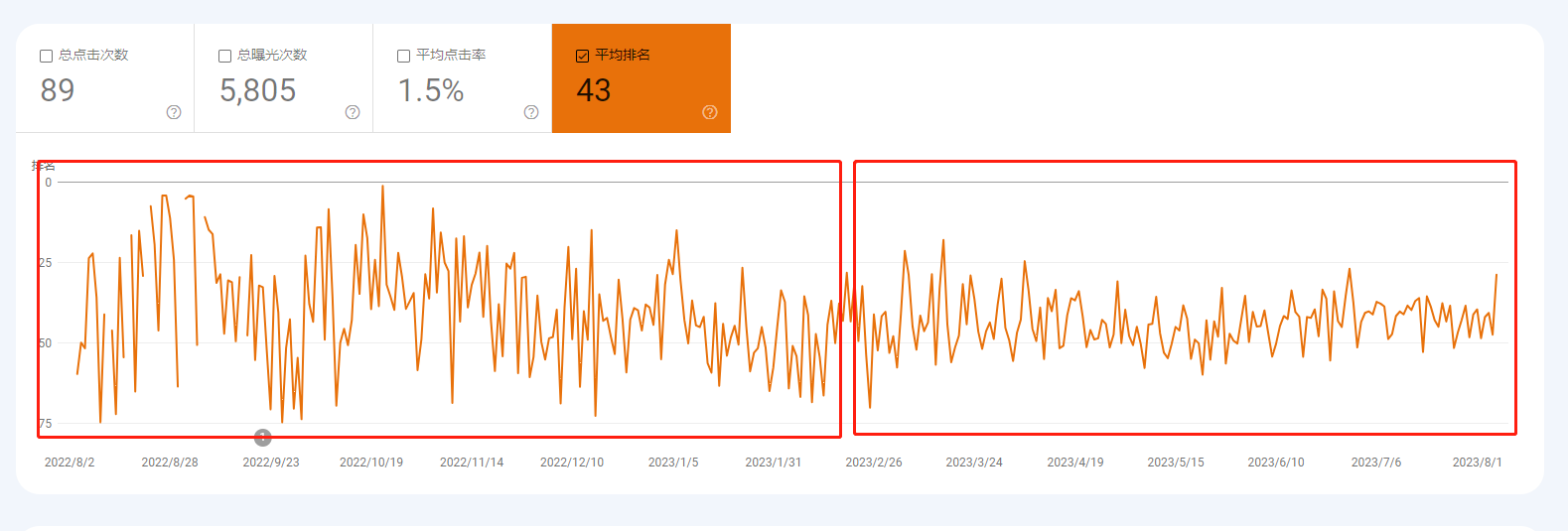 关键词排名从波动状态,进入平稳上升状态,两个阶段十分明显的变化,也就是网站已经走出0-1,正式进入1-N的阶段!只要坚持优化,数据肯定会越来越好。