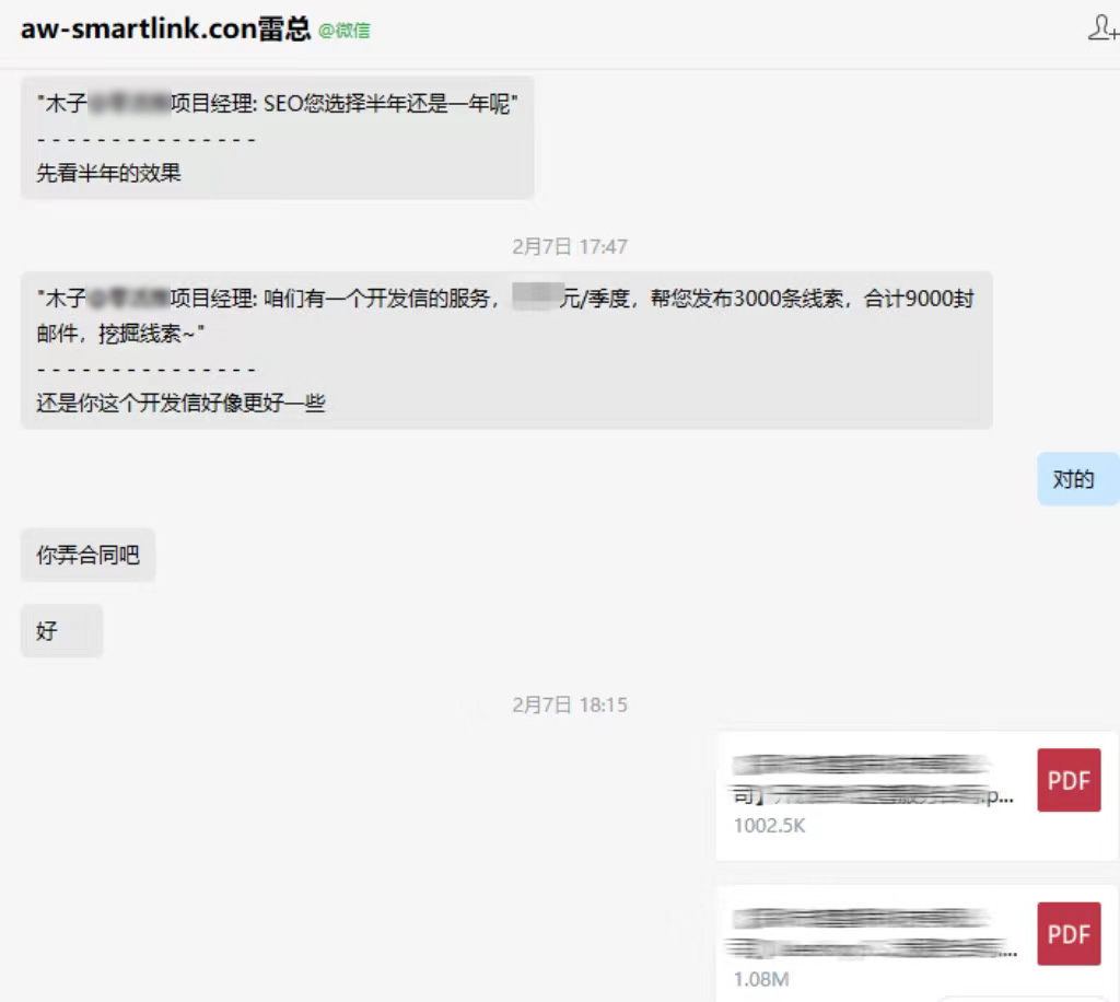 客户对服务满意,同时介绍了朋友给我们做推广,是一位做HDMI线的客户,最终购买了我们SEO优化和开发信的套餐。
